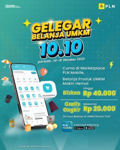 energikita.id – PT PLN (Persero) kembali ikut menyemarakkan Hari Belanja Online Nasional (Harbolnas) pada tanggal cantik 10.10 atau 10 Oktober 2023. Melalui fitur marketplace PLN Mobile, belanja produk Usaha Mikro Kecil Menengah (UMKM) anak bangsa akan mendapatkan banyak diskon spesial hingga gratis ongkos kirim (ongkir).
