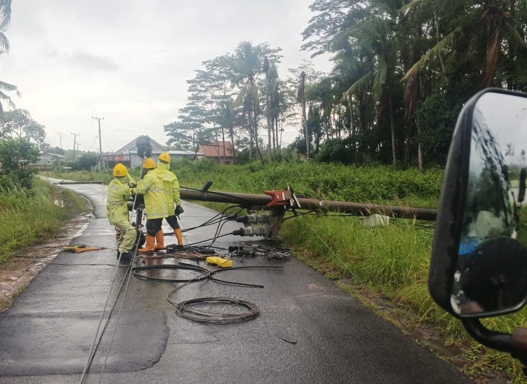 | Gerak cepat petugas PLN mengatasi cuaca ekstrem di Kecamatan Kalianda Kabupaten Lampung Selatan (12/1). FOTO DOK PLN |