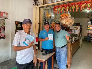 | Manager UP3 Sanggau, Ramli Malawat (kanan) terjun langsung ke lapangan melakukan sosialisasi aplikasi PLN Mobile serta layanan PLN kepada masyarakat. FOTODOKPLN |