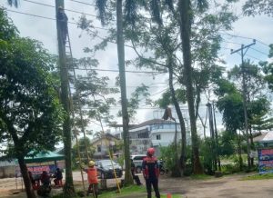 | Petugas PLN sedang melakukan pemangkasan pohon di salah satu titik yang berpotensi terjadi gangguan listrik di Kota Pontianak. FOTODOKPLN |