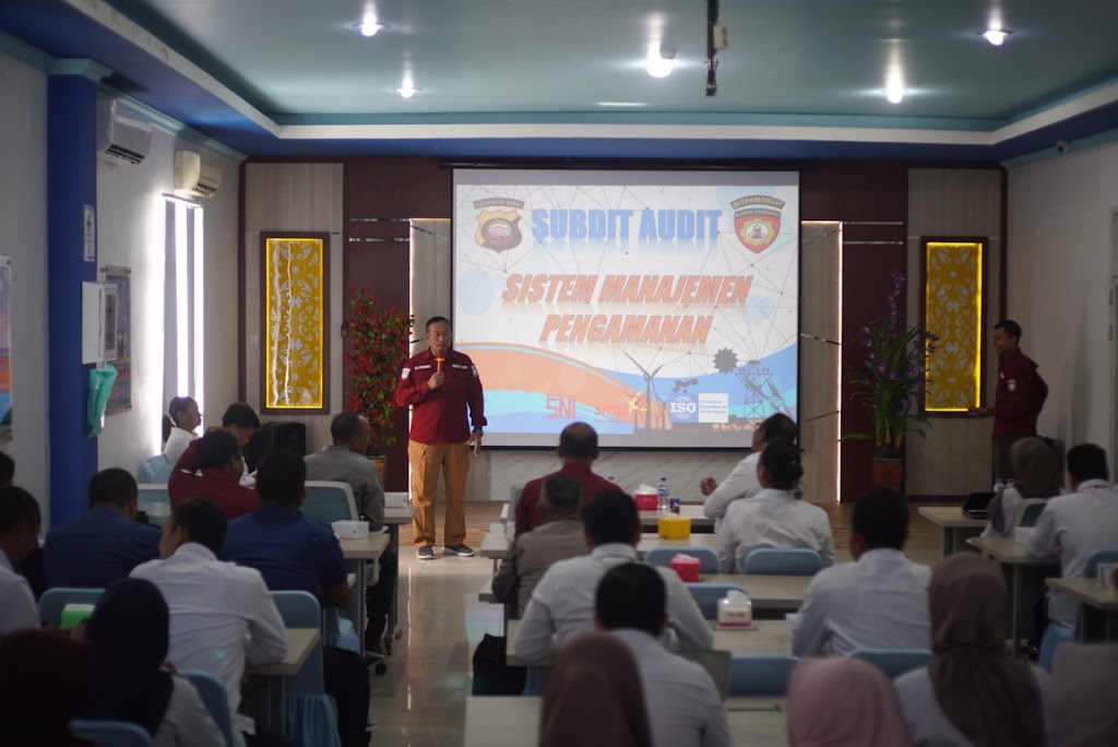 Dwi Agus Purnomo selaku pemateri dari Polres Ketapang menyampaikan bahwa yang diutamakan dalam prosedur keamanan adalah pengamanan orang/pegawai, barang dan gedung/bangunan.
