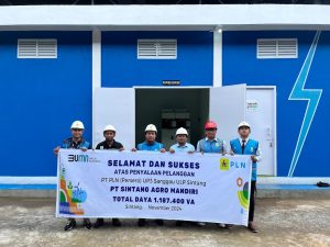 energikita.id – PT PLN UP3 Sanggau, meresmikan penyalaan listrik Pasang Baru dengan total daya 1.187.400 VA di PT Sintang Agro Mandiri (SAM) Akuisisi Captive Power merupakan salah satu langkah strategis antara PLN UP3 Sanggau dan PT Sintang Agro Mandiri (MPE Group) dalam rangka mendukung program pemerintah & mendorong pertumbuhan perusahaan untuk peningkatkan kapasitas produksi dan efisiensi dalam industri pengolahan kelapa sawit oleh industri yang menggunakan pembangkit sendiri dalam operasional.