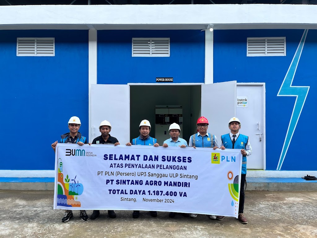 energikita.id – PT PLN UP3 Sanggau, meresmikan penyalaan listrik Pasang Baru dengan total daya 1.187.400 VA di PT Sintang Agro Mandiri (SAM) Akuisisi Captive Power merupakan salah satu langkah strategis antara PLN UP3 Sanggau dan PT Sintang Agro Mandiri (MPE Group) dalam rangka mendukung program pemerintah & mendorong pertumbuhan perusahaan untuk peningkatkan kapasitas produksi dan efisiensi dalam industri pengolahan kelapa sawit oleh industri yang menggunakan pembangkit sendiri dalam operasional.