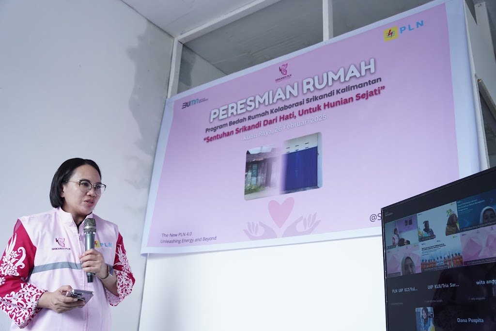 Pembina Srikandi PLN Regional Kalimantan sekaligus General Manager PT PLN UID Kalbar, Joice Lanny Wantania, menyampaikan sambutan penuh haru dalam acara bedah rumah oleh Srikandi PLN Group Kalbar. Beliau menegaskan bahwa kepedulian dan kebersamaan adalah kunci dalam mewujudkan perubahan nyata bagi masyarakat. (FOTO/DOK/PLN)